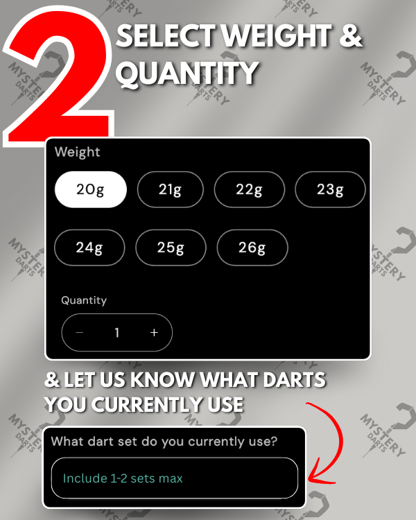 Mystery Darts is a surprise-based experience where you choose your desired dart weight (20g–26g), and we send you a completely random set of premium darts. Each set is brand new ensuring you receive a top grade set of darts every time! You won’t know the brand, design, or value until they arrive, but one thing’s guaranteed: every box brings quality and excitement.